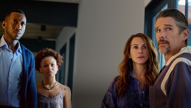 Ein Luxus-Familienurlaub nimmt eine unheilvolle Wende, als die Familie durch eine Cyberattacke von der Außenwelt abgeschnitten wird und plötzlich zwei Fremde vor der Tür stehen.